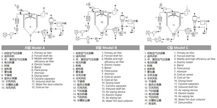 基本原理:中药浸膏高速离心喷雾装置是离心式喷雾干燥技术在特定物料干燥中的应用,也是利用高速离心式雾化器使物料分散成雾状,与热空气所充分接触,完成瞬间干燥,形成粉状成品的干燥装置。