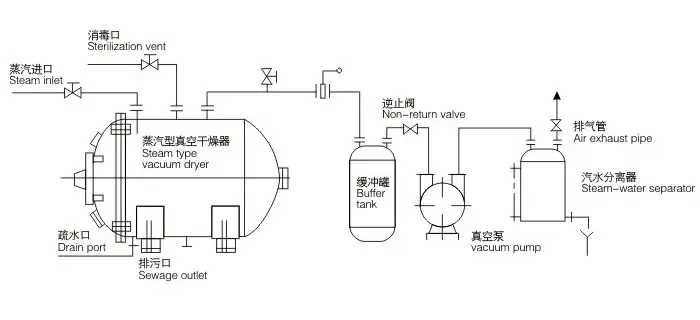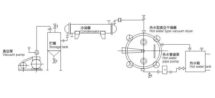 注:如采用冷凝器,物料中的溶剂可通过冷凝器加以回收;如采用SK中国买球指南水环真空泵,可不用冷凝器,节省能源投资。